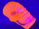 Green Vaseline Uranium Glass Skull Head Glow Neon Paperweight Halloween Selenium