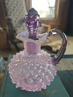 Fenton Pink Chiffon Opalescent Hobnail Cruet - Violet Carnival Stopper + Handle
