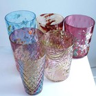 C1890 Art Glass Tumbler Collection, Amberina Mary Gregory, Rainbow Glass, Hand E
