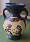 Vtg Signed Pottery 2.5" Miniature Urn No 0,46 Hand Made In Greece Black Beige