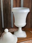 Vintage L.e. Smith Micro English Hobnail Milk Glass Urn Pedestal Jar / Planter