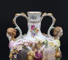 19c German Dresden Porcelain Handled Urn Figural W/ Maidens Hand Painted 15.25"