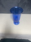 Crystal Cobalt Blue Hand Blown Glass Art Footed Vase With Clear Stem 9.5”