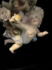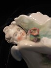 Beautiful Antique Footed Ruffled Top Vase /hand Painted W/ Cream, Blue, And Gold