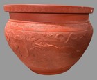 Vintage Terracotta Red Clay 7" Jardiniere Vase With Embossed Dragon