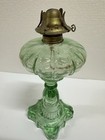 Antique Green Pressed Glass Oil Lamp Brass Burner Victorian Style
