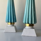 Mid Century Fluted Blue Lamps Murano Glass (set Of 2)