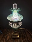 Fenton Spruce Green Carnival Glass Hand Painted Floral Student Lamp D Caplinger