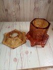 Vintage Fenton Fairy Light Hobnail Golden Amber Glass Candle Holder Lamp