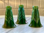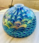 Lundberg Studios Art Glass Lamp Shade 10” Pulled Feather Iridescent Blue Green