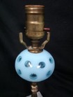Vintage Fenton 1967-1973 Colonial Blue Cabbage Rose Glass Lamp With Marble Base