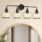 New 4-light Bathroom Light Fixture Black With Clear Glass Shade Modern Fast Ship