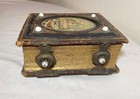 Antique 1800's Ornate Hand Made Painted Bronze Glass Tooled Leather Photo Album