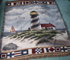 Vintage Nautical Woven Tapestry Throw Rug Coastal Lighthouse 55x49