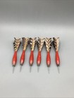 Vintage Red Wood Handle Feather Throwing Darts Set Of (6) Steel Tip Primitive
