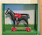 Vintage 2003 Schylling Penny Toy Tin Toy Wheeled Horse Ornament In Box Cow Print
