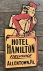 Hamilton Hotel “fireproof”, Allentown, Pa, Metal Flange Sign, 23.5” X 12”