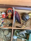Vintage Junk Drawer Toys Shells Bakelite Charlie Mccarthy Red Pencil Sharpener