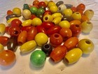 Vintage Wood Bead Wooden Macrame Lot 68 Beads Wood Blue Red Green Yellow Orange