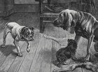 Dog Bloodhound Guards Spaniel Puppy From Bulldog, Large 1880s Antique Print