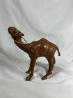 Vintage Leather Wrapped Camel Figure With Reins ~7” Glass Eyes