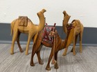 Hand Carved Wooden Camels Carving Figurine Sculpture Set Of 3
