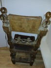 African Art Chiefs Chair 40x18 Hand Carved Wood W/ Leather Seat And Metal Studs
