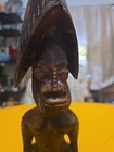 African Carved Figural Trinket Box Primitive Wood Tribal Native Art Vintage