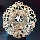 Silver Framed Chinese Good Luck Plaque, Blessings, Prosperity Longevity -