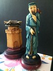 Carved Figurine & Castle Highly Detailed Vtg Wood & Resin Chinese Asian Chess