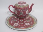 Famille Rose Red Porcelain 9-piece Tea Set Mun Shou Longevity
