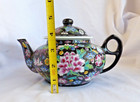 Chinese Millefleur Black Floral Chintz Porcelain Teapot 1000 Flowers Vintage