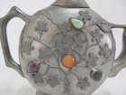 Ornate Chinese Pewter Teapot With Raised Gemstone Flowers & Serpentine Spout