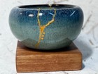 Mini Kintsugi Style Japanese Repair Technique, Blue/turquoise Tea Cup, Vg