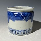 Vintage Blue & White Ceramic Charcoal Pot | Antique Japanese Hibachi Style