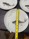 Japanese Pottery Plates Blue Hand Painted Fish Unique 6.25 Inch Unsigned #6547