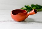 Handmade Ceramic Red Flowers Matcha Bowl With Spout And Handle