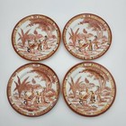 Vintage Japanese Kutani Ware Porcelain Plates Geisha Brown Gold Gilded Set Of 4