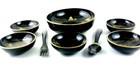 Mid Century Japanese Folk Art Lacquer Ware Serving 8 Piece Painted Wood Bowl Set