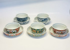 Chikusai Kiln Kakiemon Porcelain Tea Cups And Saucers Set Of 5 Mint Condition