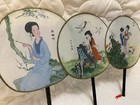 Set Of 3 Assorted Vintage Japanese Craft Hand Folding Fans Bamboo Wood