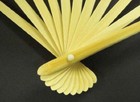 Japanese Red Bamboo 13" Yellow Paper Fan With Plastic 3" Fan Holder