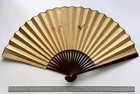 Vintage Japanese All-wood Folding Fan Hand-painted Gold Geisha Scene Art Decor
