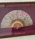 Beautiful Antique Fan Framed Box Hand Painted Silk Mother Of Pearl Bamboo 20x13"
