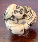 Carved & Etched Replica Masatoshi? Resin Man On Cat Netsuke Unsigned 2" ~ Flaws