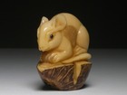 Carved Boxwood Netsuke Squirrel In Tree Branches Curled Sleeping 3" Sculpture