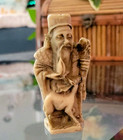 Netsuke Japanese Resin Figurine Sculpture Man Pipe Lamb Walking Stick Vtg-antiq