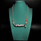 Vintage Tibet Nepal Ethnic Tribal Beads Turquoise Coral Inlay Ceramic Wire Neckl