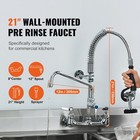 21" Commercial Pre-rinse Faucet Wall Mount Kitchen Sink Faucet W/ Sprayer