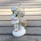 Antique Porcelain Figural Boy On Phone With Egg Timer